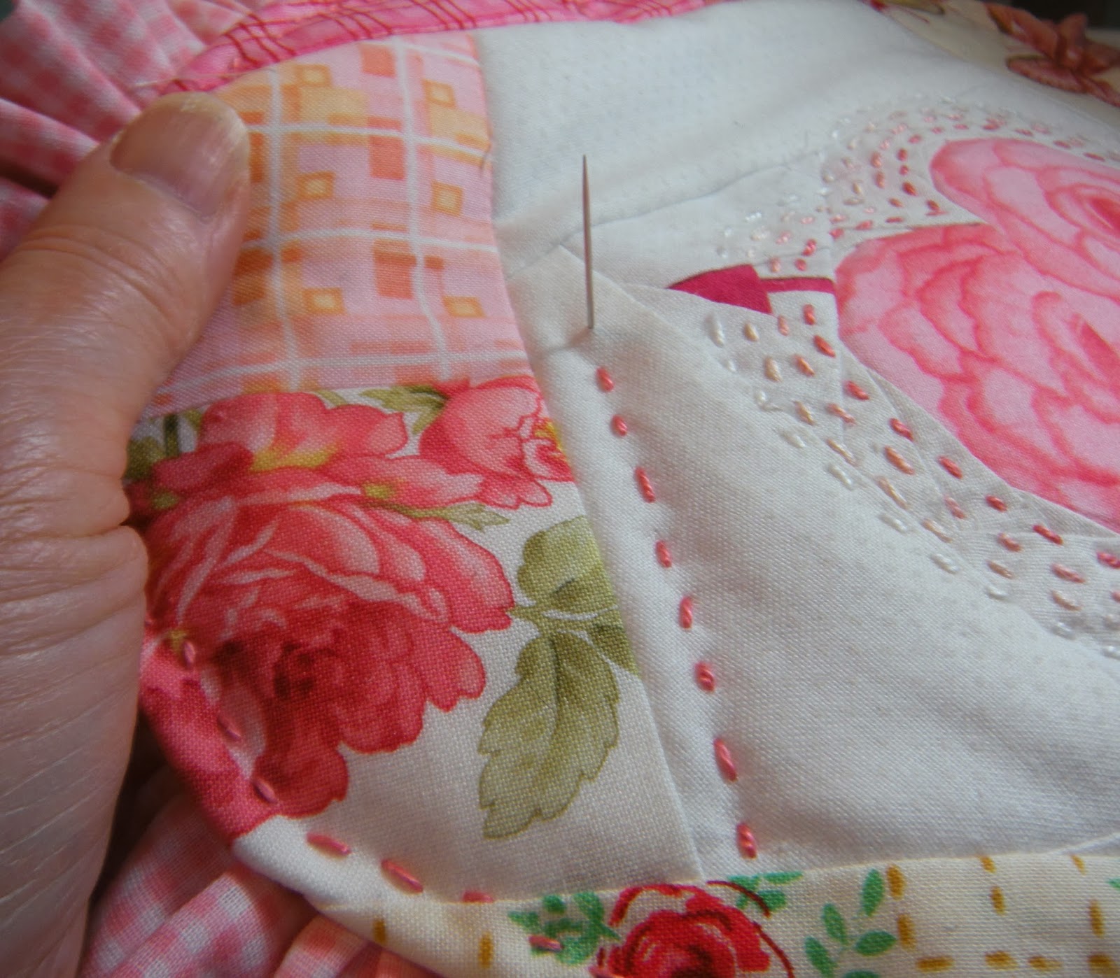 Pretty and sort of vintage looking. Lovely quilt also!