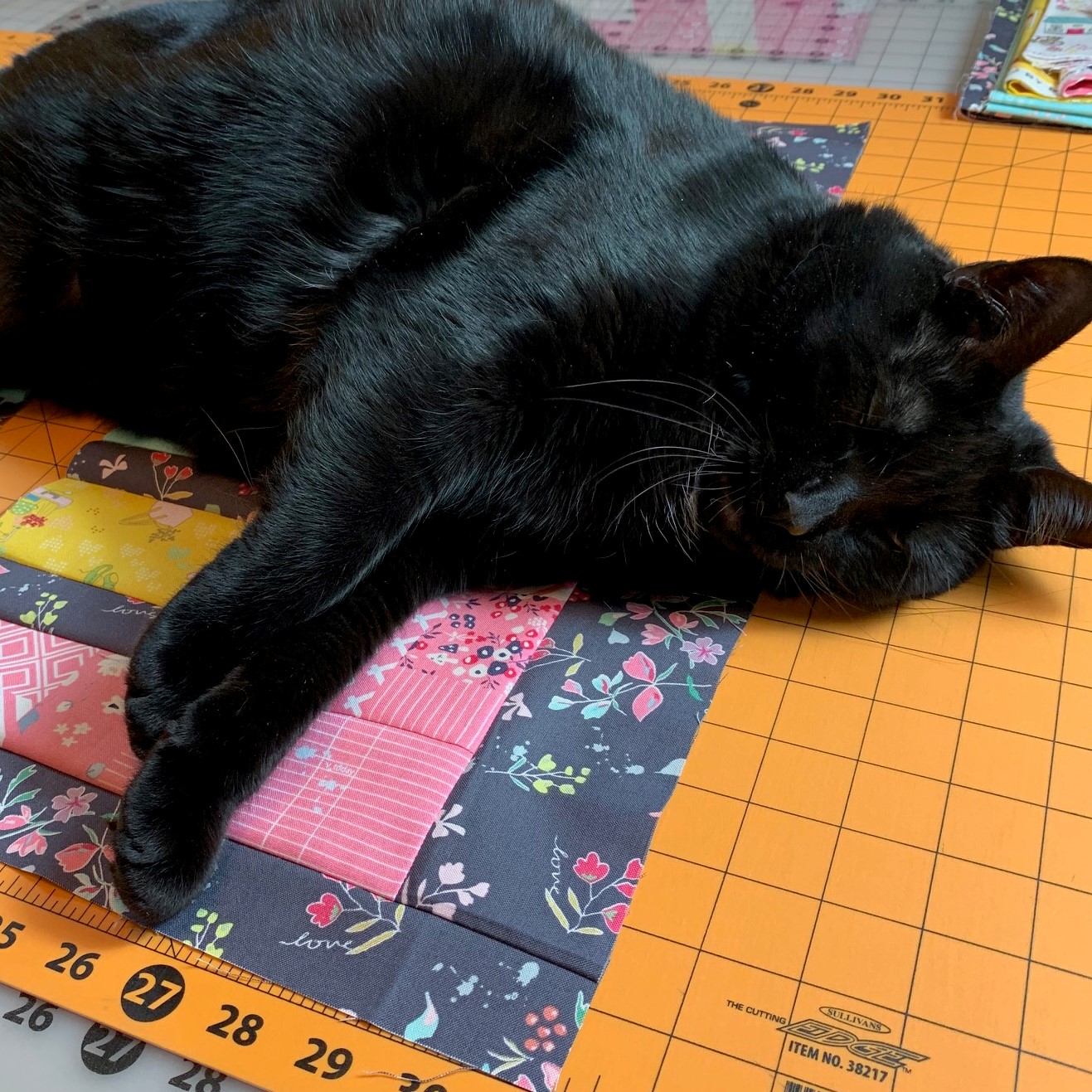 Quilty Kitty Nutmeg kept me company by napping by me in my extra chair.